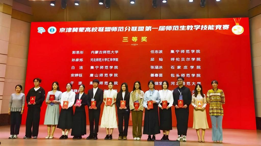 9月19日至21日,京津冀蒙高校聯盟師范分聯盟第一屆師范生教學技能競賽在內蒙古師范大學圓滿落幕。本次競賽匯聚來自京津冀蒙四地21所高等師范院校的166名優秀選手,通過多環節比拼展現師范生的專業素養、教學能力與職業風采。我校學子在競賽中表現亮眼,斬獲多項榮譽。