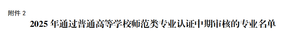 近日,教育部辦公廳正式發布了《教育部辦公廳關于公布2025年通過普通高等學校師范類專業認證專業名單及中期審核專業名單的通知》(教師廳函[2025]18號)。在此次認證中,我校美術學、思想政治教育、英語、體育教育專業成功通過第二級專業認證。數學與應用數學專業通過師范類專業認證第二級認證中期審核。