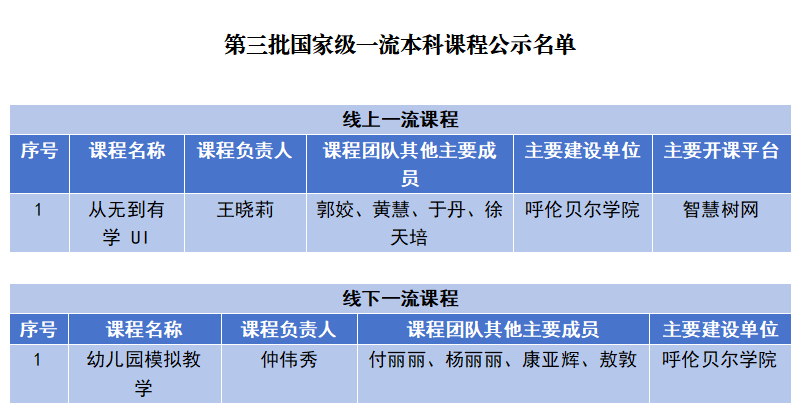 近日,教育部高等教育司發布《關于第三批國家級一流本科課程認定結果的公示》,我校《從無到有學UI》和《幼兒園模擬教學》兩門課程成功入選,實現了我校在國家級一流本科課程認定上“零的突破”。