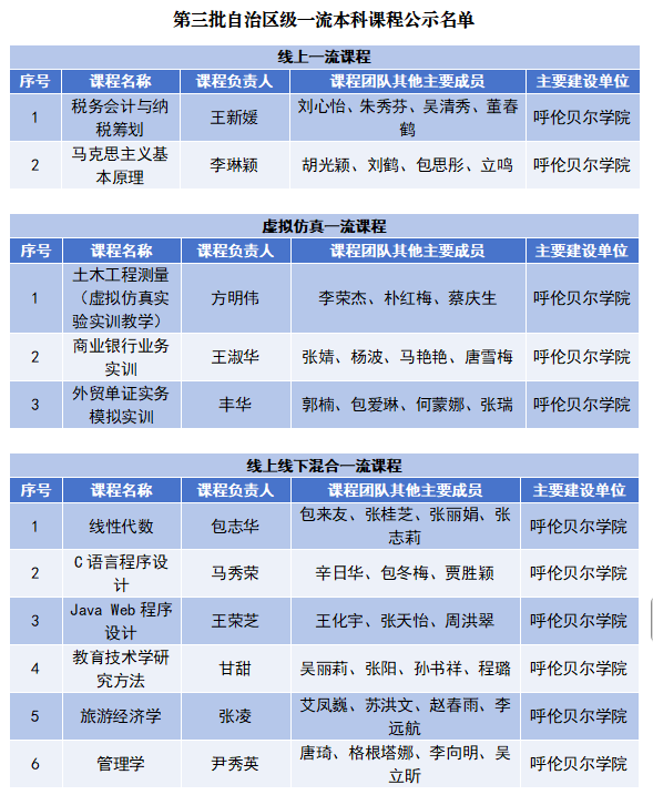隨后,內蒙古自治區教育廳公示“關于第三批自治區級一流本科課程認定結果”,我校《稅務會計與納稅籌劃》等25門課程成功入選,入選數量位居自治區高校前列,至此,我校自治區級一流本科課程達44門,這標志著我校課程建設水平邁上了新臺階。