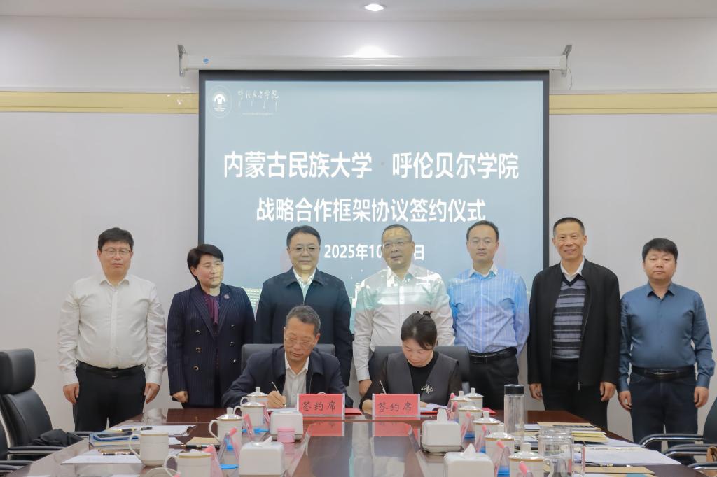 楊恒山、張桂芝分別代表兩校,正式簽署《內蒙古民族大學 呼倫貝爾學院戰略合作框架協議》。根據協議,兩校將重點在學科專業建設、人才培養、科學研究、師資隊伍建設、國際交流合作五大領域,建立常態化交流合作機制。