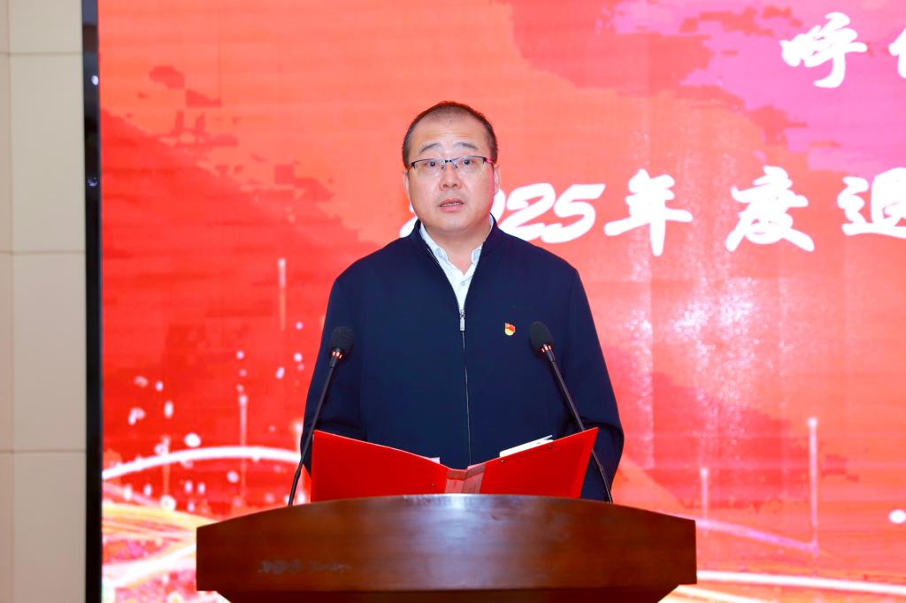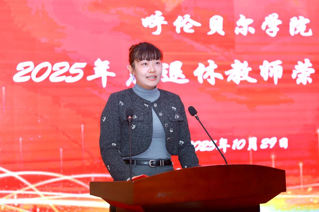 儀式現場,張宏天代表學校黨委和全校師生員工向榮休教職工致以崇高敬意和衷心感謝。他表示,38位老同志們將最美好的青春年華奉獻給了呼倫貝爾學院這片熱土,學校的發展凝聚著每位教職工的心血與智慧。在審核評估正在進行的關鍵時期舉辦榮休儀式,既是對老同志們奉獻的肯定,更是對薪火相傳的期許。他向老同志們提出“退休不褪色、卸任不謝幕、離崗不離心”的三點期盼,希望他們繼續做呼院精神的守護者、美好生活的追求者和學校發展的參謀者。同時,他強調學校將從強化理論學習、構建精準服務體系、搭建共享陣地平臺、健全激勵關懷機制、營造敬老氛圍五個方面,用心、用情做好離退休服務保障工作。