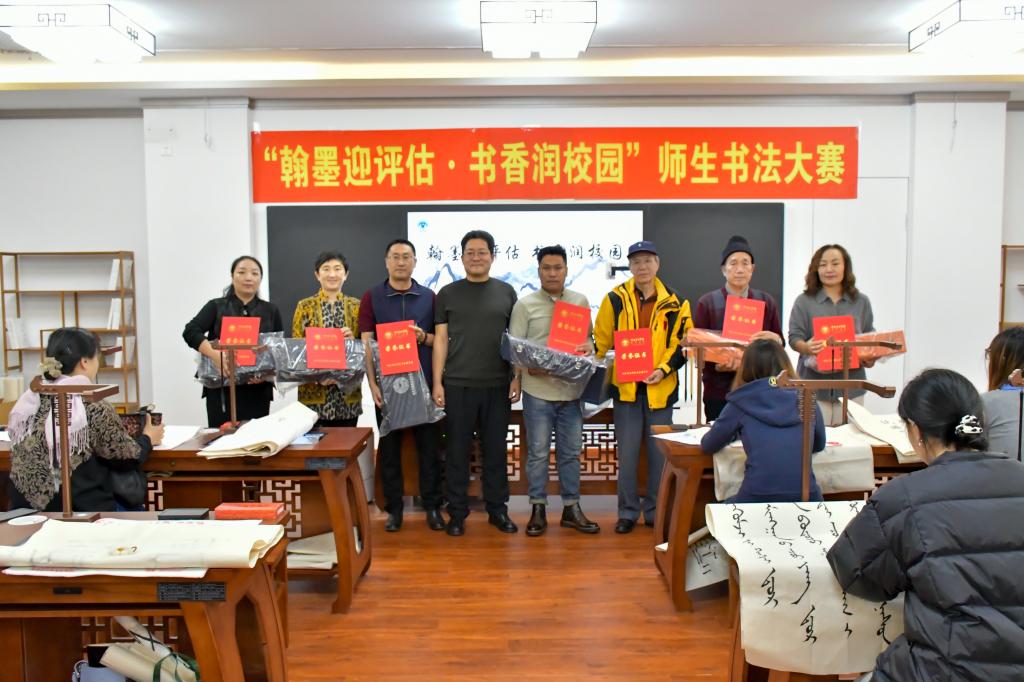 為傳承中華優秀傳統文化,營造“以評促建、以評促改、以評促管、以評促強”的濃厚校園氛圍,11月5日下午,由校工會、團委、離退休工作處聯合舉辦的“翰墨迎評估書香潤校園”師生書法比賽在崇文樓A座書法教室順利舉行。校黨委副書記張宏天、工會主席呂根、團委書記王曉芳、離退休工作處處長孫桂平來到了比賽現場,音樂與舞蹈學院黨委書記包德、美術學院教師張明星、楊文斌、劉佳,以及數理學院教師楊貴玉等5人擔任本次比賽評委,來自全校各部門、各學院的百余名師生選手分赴三個場地同臺競技,以筆墨寄情懷,為評估添風采。