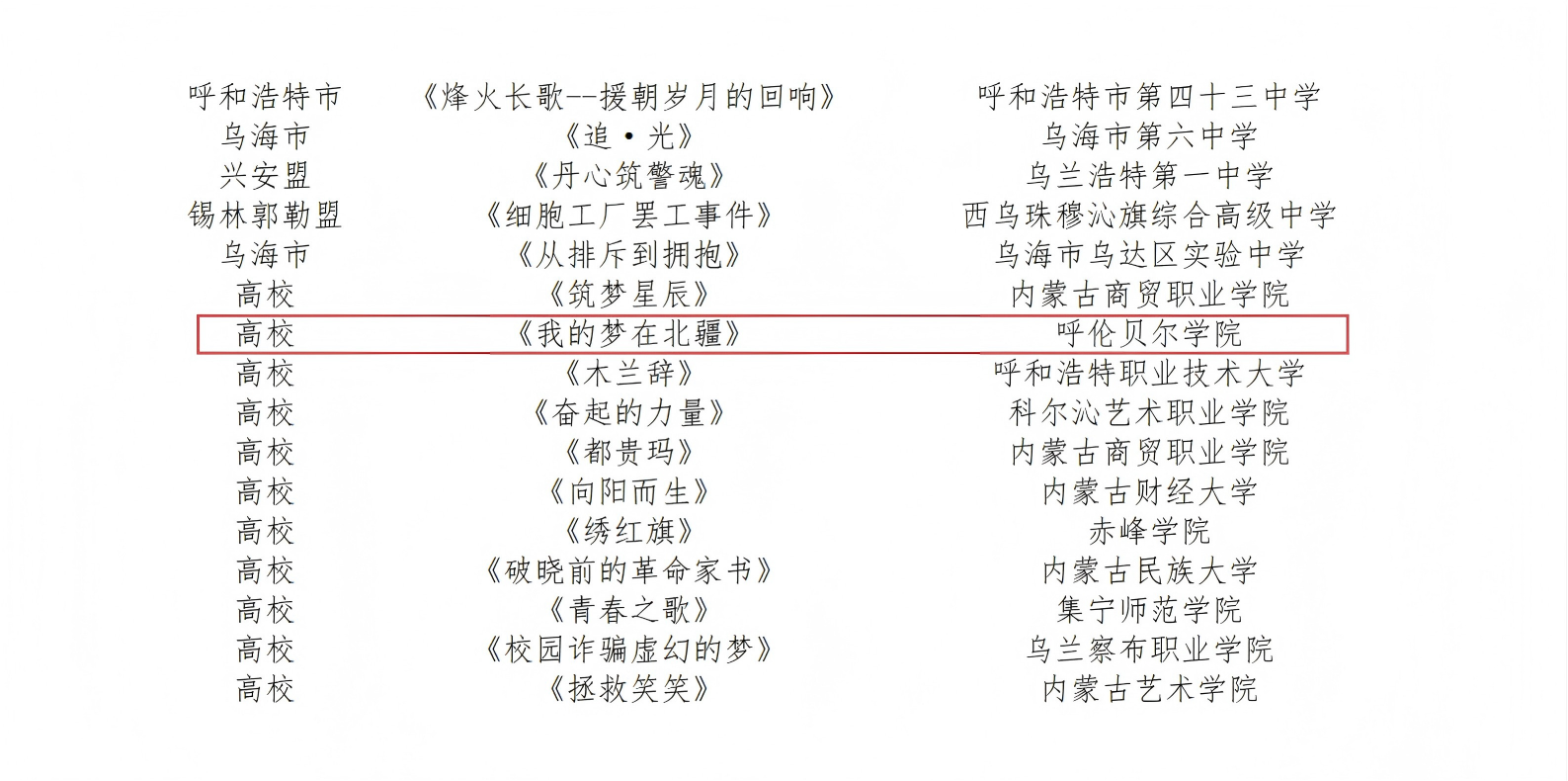 本次展演由內蒙古自治區教育廳主辦,以“綻放藝術風采 激發強國力量”為主題,吸引了全區多所大中小學的優質作品同臺競技,競爭激烈。我校學子憑借扎實的藝術功底、精湛的表演技藝與真摯的情感表達,交出了亮眼答卷:合唱作品《永遠的烏蘭牧騎》《為內蒙古喝彩》榮獲高校甲組合唱二等獎、《如愿》《夜空中最亮的星》榮獲高校甲組合唱三等獎;戲劇作品《我的夢在北疆》榮獲高校甲組一等獎、《鋼鐵意志》榮獲高校甲組二等獎,《我的夢在北疆》還榮獲高校甲組最佳導演獎、優秀創作獎。