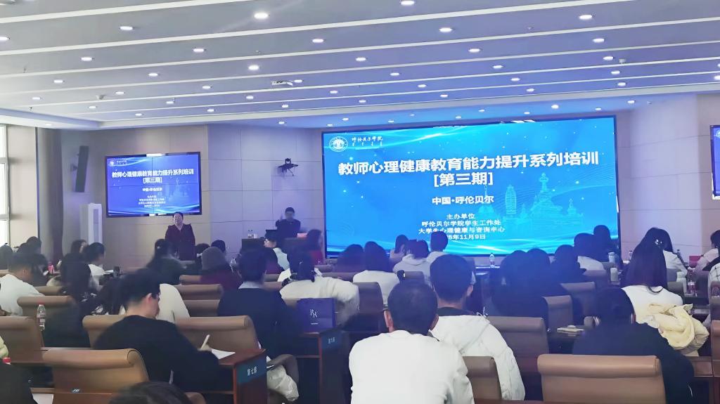 為深入貫徹教育部等十七部門(mén)《全面加強(qiáng)和改進(jìn)新時(shí)代大學(xué)生心理健康工作專項(xiàng)行動(dòng)計(jì)劃(2023—2025年)》及《內(nèi)蒙古自治區(qū)加強(qiáng)和改進(jìn)新時(shí)代學(xué)生心理健康教育工作實(shí)施方案》精神,扎實(shí)推進(jìn)大中小學(xué)心理健康教育一體化建設(shè),11月9日,我校在崇文樓A201會(huì)議室舉辦了呼倫貝爾市教師心理健康教育能力提升系列培訓(xùn)(第三期)。呼倫貝爾市各高校輔導(dǎo)員、中小學(xué)心理教師及我校專兼職心理教師參加了本次培訓(xùn)。