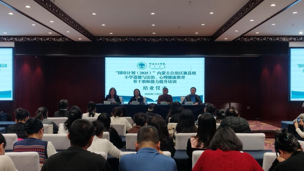 11月15日上午,“國培計劃(2025)”內(nèi)蒙古自治區(qū)旗縣級小學(xué)道德與法治、心理健康教育骨干教師培訓(xùn)班結(jié)業(yè)儀式順利舉行。我校繼續(xù)教育學(xué)院院長莎茹莉、海拉爾區(qū)教育研修中心副主任畢秀芝、道德與法治教研員王靜飛等領(lǐng)導(dǎo)、專家及全體參訓(xùn)教師參加儀式。儀式由我校繼續(xù)教育學(xué)院副院長汪鑫主持。