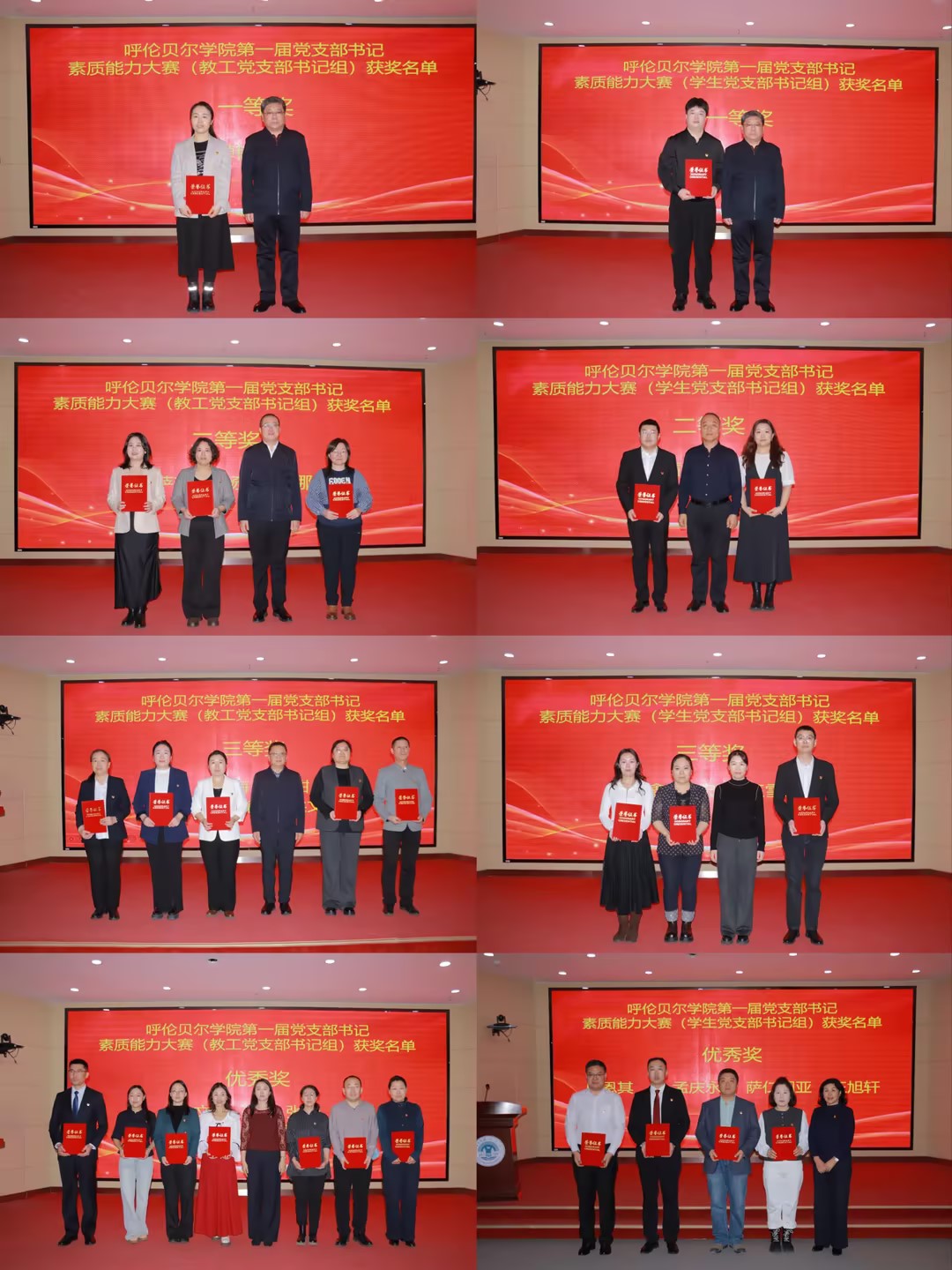 大賽設立教工黨支部書記和學生黨支部書記兩個賽道,經初賽基礎知識測試選拔,16位教工黨支部書記和10位學生黨支部書記脫穎而出。決賽設置微黨課宣講、情景模擬處置、典型案例剖析等環節,重點考察黨支部書記理論素養、實務能力、創新思維和育人實效。決賽評委由呼倫貝爾市委組織部、呼倫貝爾市委黨校、呼倫貝爾職業技術學院、滿洲里市委黨校等單位的校外黨建工作專家,以及學校黨政部門主要負責同志組成。參賽選手覆蓋全校所有黨支部,系全區高校首家專門面向黨支部書記素質能力組織設計的專項賽事。大賽共設一等獎2名、二等獎5名、三等獎8名及優秀獎若干。經過激烈角逐,外國語學院教師韓麗偉和馬克思主義學院教師田震分別獲得教工黨支部書記組和學生黨支部書記組一等獎。全校各基層黨組織書記現場觀摩。