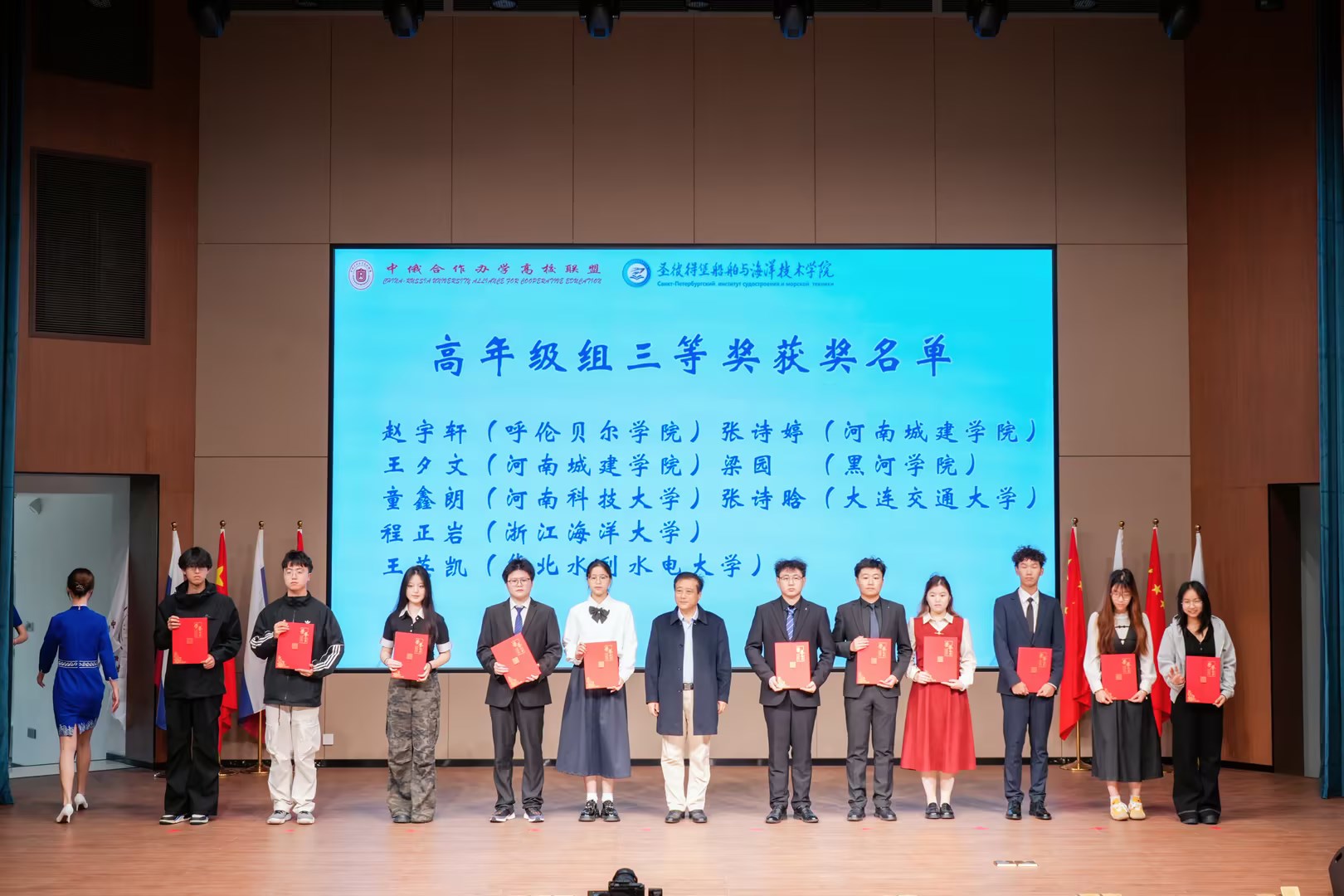 我校四名學子憑借扎實的俄語功底、出色的跨文化表達與深刻的主題詮釋,在賽場中展現了良好的綜合素質,其中兩名學子斬獲榮譽。其中,在高年級組,劉彥偉憑借流暢的表達與清晰的邏輯榮獲二等獎;趙宇軒以自信的臺風與充實的內容獲得三等獎。這些榮譽的獲得不僅是對參賽學生個人努力與專業素養的肯定,更是學校長期以來深耕中外合作辦學領域、推進“專業+語言+國際化”人才培養模式結出的碩果。