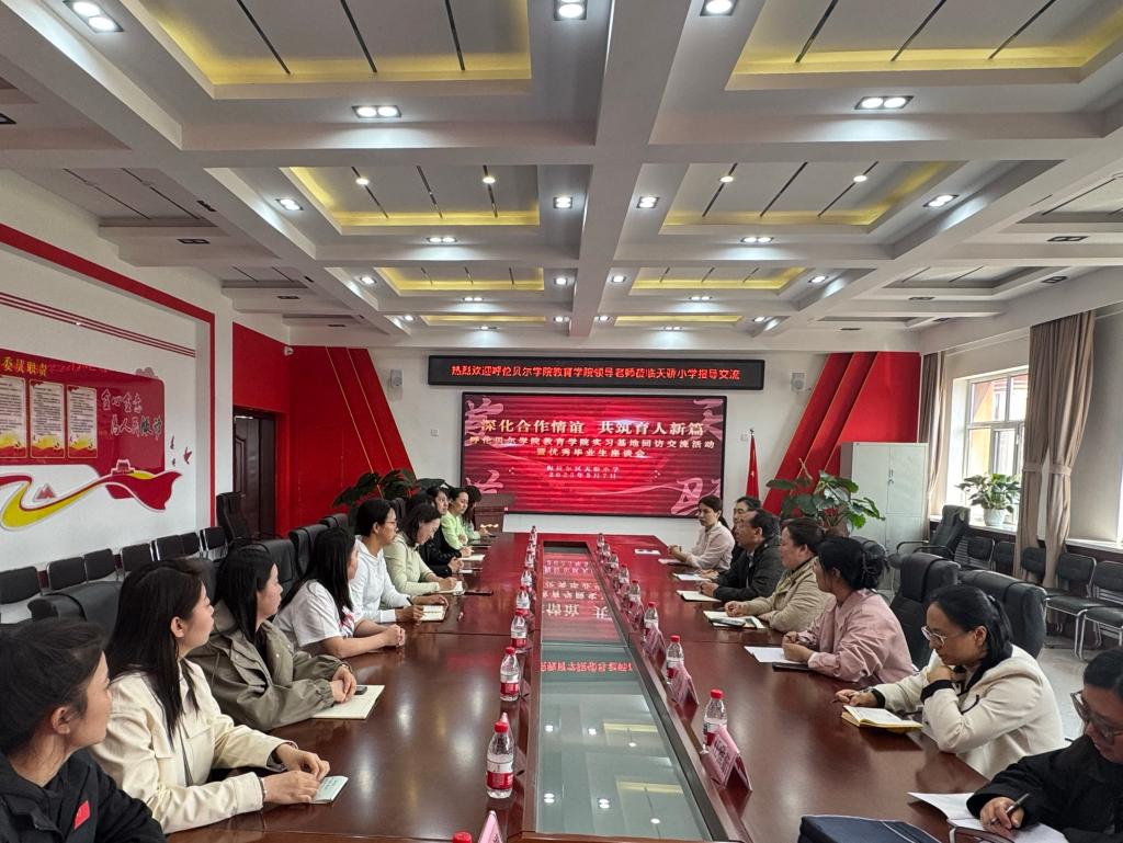 為扎實(shí)提升師范生培養(yǎng)質(zhì)量,深化校地合作,5月7日,教育學(xué)院黨總支書(shū)記海江、院長(zhǎng)李偉艷率領(lǐng)學(xué)院班子成員、教育技術(shù)系和小學(xué)教育系骨干教師及相關(guān)環(huán)節(jié)干部先后前往海拉爾區(qū)第七中學(xué)和海拉爾區(qū)天驕小學(xué),實(shí)地考察實(shí)踐基地建設(shè)情況,并就校地共建、協(xié)同育人進(jìn)行了座談交流。
