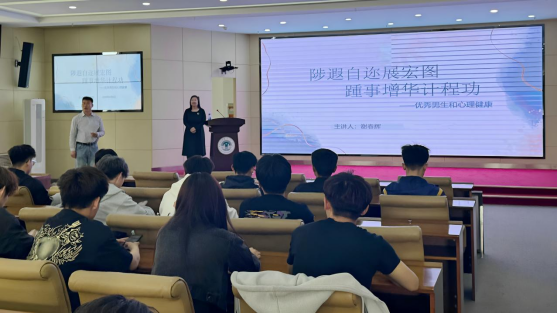 為進一步引導學生合理地規劃大學生活,掌握心理健康知識和技能,譜寫未來,規劃人生,5月10日,體育學院(冰雪運動學院)在崇文樓A201會議室開展“陟遐自邇展宏圖 踵事增華計程功——優秀男生和心理健康”專題講座,學生工作處副處長、國家二級心理咨詢師、高級家庭教育指導師謝春輝擔任主講,體育學院(冰雪運動學院)黨總支副書記凌占一主持,團學辦副主任張娜娜、輔導員學峰及全體大一學生參加了講座。