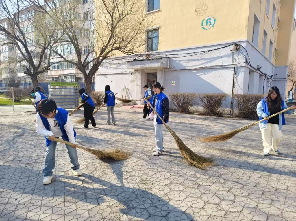 活動當天,同學們手持清潔工具,分組行動,對校園內多個區域進行全面清掃。從宿舍樓門前到校園小徑,他們不放過任何一個衛生死角。同學們不怕臟、不怕累,認真清理地面煙頭、清掃落葉等垃圾。勞動過程中,黨員們以身作則,積極主動承擔臟活累活,帶動身邊的積極分子共同投入到勞動中。
