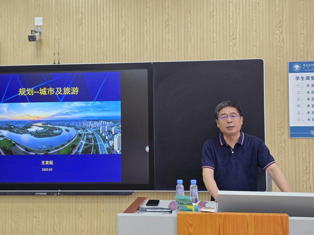 為深化旅游管理專業(yè)研究生對(duì)城市規(guī)劃與旅游發(fā)展的學(xué)術(shù)認(rèn)知,拓展學(xué)科視野,5月13日下午,旅游地理與歷史文化學(xué)院邀請(qǐng)呼倫貝爾市國(guó)土空間規(guī)劃研究中心副主任、呼倫貝爾學(xué)院旅游管理專業(yè)碩士研究生行業(yè)導(dǎo)師王發(fā)起在崇文樓B402教室作題為“規(guī)劃——城市及旅游”的專題講座。講座由學(xué)院副院長(zhǎng)徐舒靜主持,研究生辦公室主任楊燕燕以及2023、2024級(jí)旅游管理專業(yè)研究生聆聽(tīng)講座。