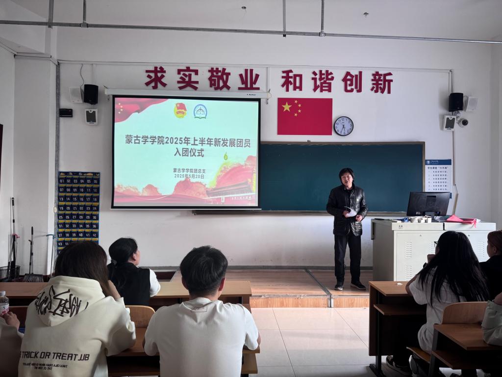 為加強共青團隊伍規范化建設,增強團員青年的榮譽感和使命感,5月20日,蒙古學學院舉行2025年上半年新發展團員入團儀式。學院黨總支副書記孔春艷、團總支書記額爾布樂圖、新發展團員及全體團干部參加儀式,儀式由團總支副書記阿麗雅主持。