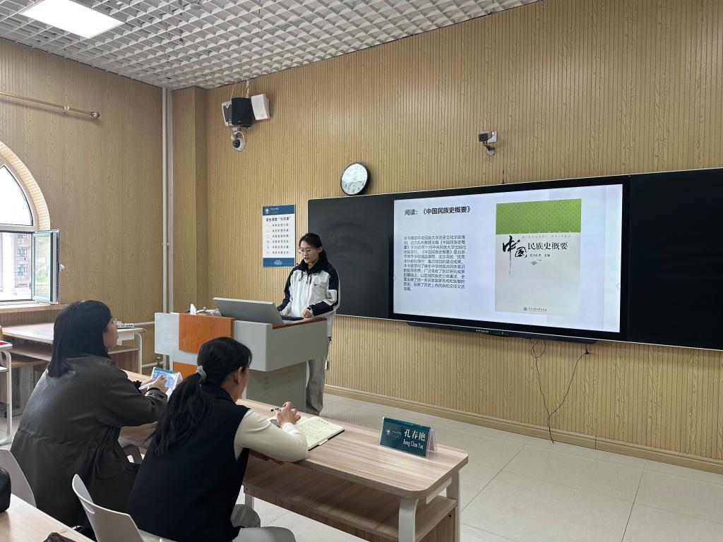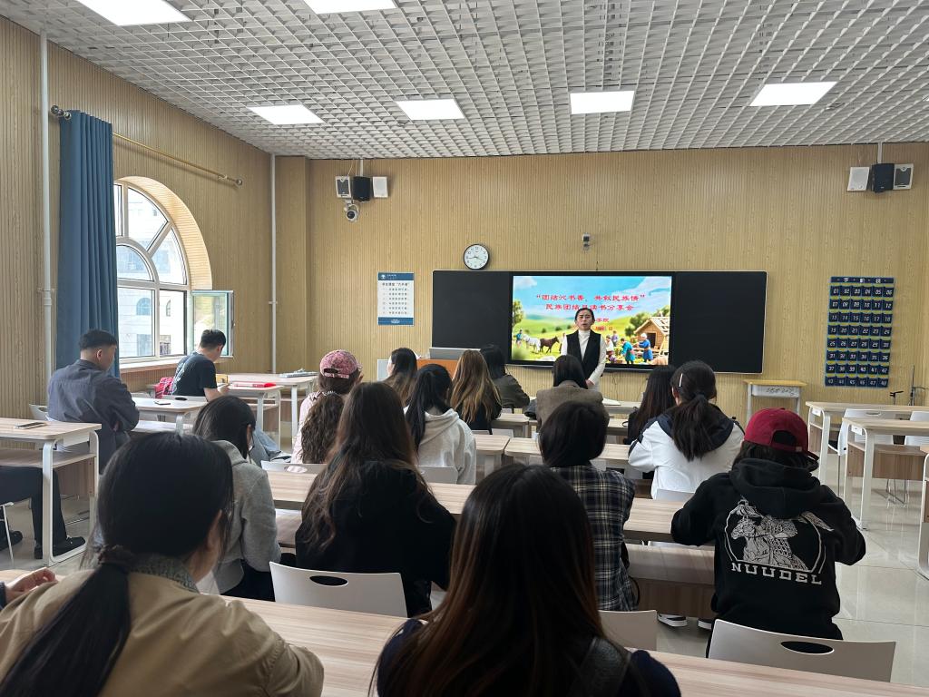 在《中國民族史概要》讀書分享會上,同學們從多角度分享了閱讀體會。2023級社會學專業坦黑拉同學首先介紹了該書的基本內容與學術價值。2022級中國少數民族語言文學專業陳彩虹同學從專業視角出發,重點分析了書中關于北方游牧民族與中原民族互動交融的論述,指出這種歷史交流不僅推動了經濟文化發展,更促進了中華民族共同體意識的形成。2022級社會學專業安琪爾同學結合自身研究方向,分享了書中關于少數民族文化傳承與發展的內容,通過具體案例闡述了民族文化在維系民族認同中的重要作用。2023級中國少數民族語言文學專業敖民同學則以"中華民族多元一體格局"為切入點,解讀了我國各民族在長期交往中形成的緊密聯系。孔春艷在總結中指出,書籍是文明傳承的橋梁,也是增進民族理解的紐帶。她希望同學們通過此次讀書分享會,能夠在書香中探尋中華民族多元一體的歷史脈絡,從文化共鳴中凝聚團結奮進的精神力量。