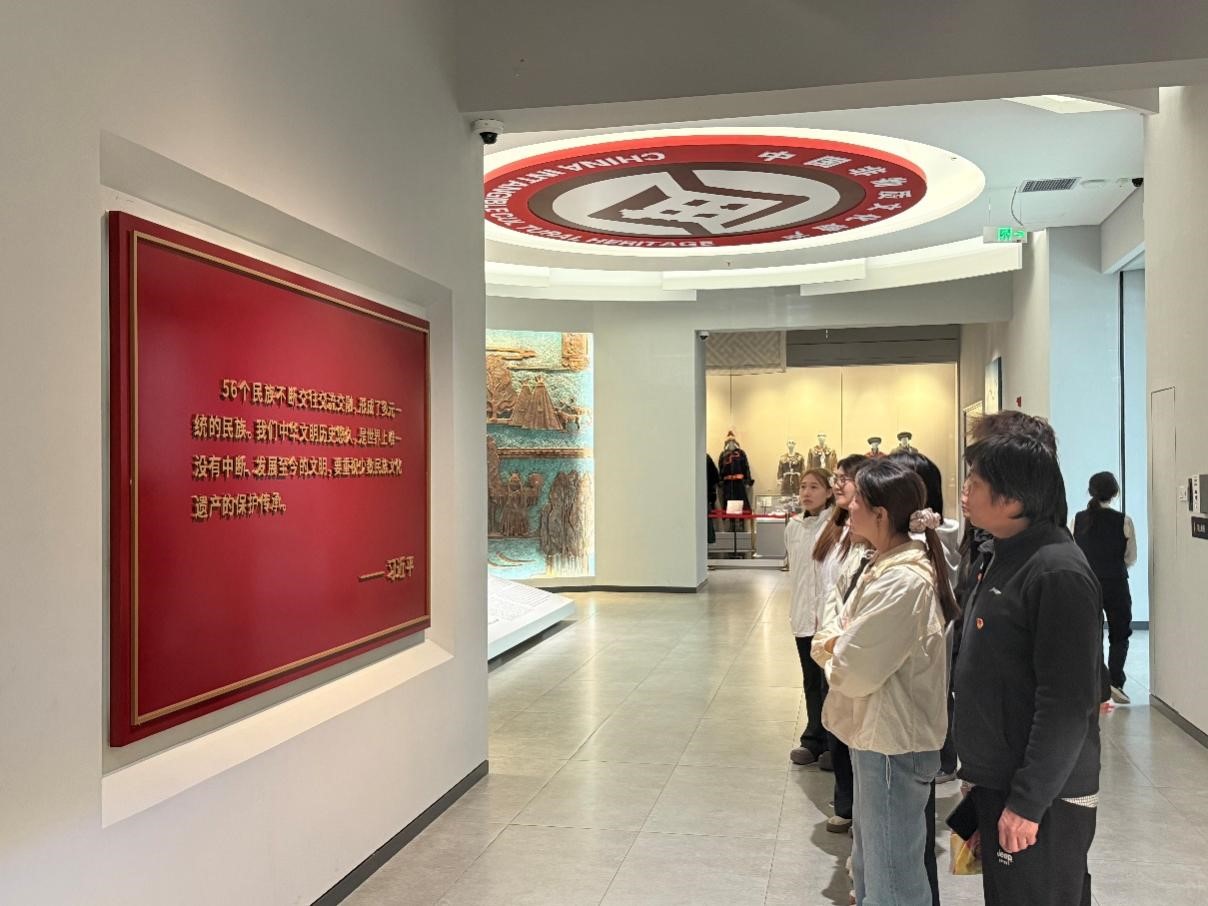 進(jìn)入館內(nèi),師生依次參觀了“星熠北方——史前時期的呼倫貝爾”“融合之路——夏至南北朝時期的民族交融”等特色展廳。在這里,從冰河時期留存至今的猛犸象化石到承載著遼金時期文明印記的青銅器物;從清晰展示鮮卑族南遷路線的歷史地圖到定格“三千孤兒入內(nèi)蒙”這一感人歷史瞬間的影像資料,一件件珍貴文物與現(xiàn)代科技手段完美融合,生動再現(xiàn)了呼倫貝爾從遠(yuǎn)古文明曙光初現(xiàn)到新時代蓬勃發(fā)展的壯闊歷史畫卷。通過實物陳列展示與詳盡的圖文解說,大家不僅對呼倫貝爾的歷史變遷與發(fā)展脈絡(luò)有了更為全面、深入的了解,更真切感受到了歷代建設(shè)者們在艱苦環(huán)境中艱苦創(chuàng)業(yè)、頑強(qiáng)拼搏的奮斗精神。
