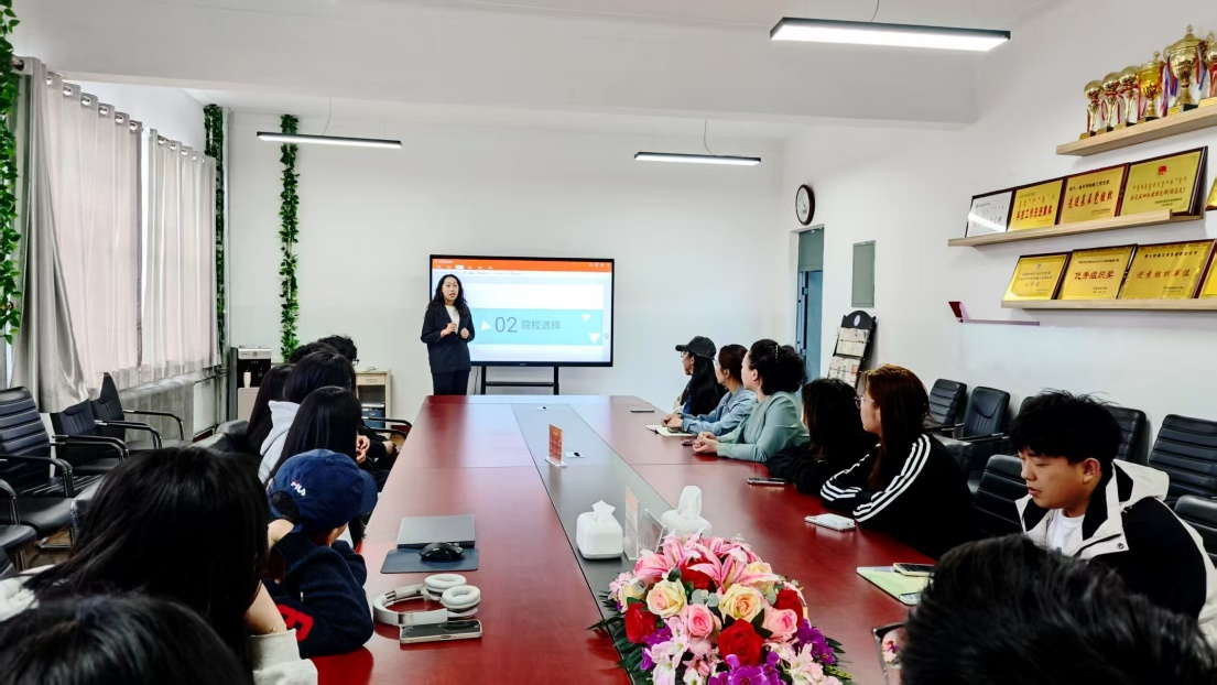 分享會上,趙梓琦展示錄取通知書截圖,用自身成果提振同學們考研信心。在院校選擇講解中,她結合個人經歷,從專業適配、招生政策、地域發展等維度進行剖析,為大家提供科學擇校思路。互動答疑環節氛圍熱烈,針對備考心態調整、跨專業考研要點、復試流程等問題,趙梓琦傾囊相授,任晶與張巍巍也結合自身經驗耐心解答。張巍巍在總結時鼓勵同學們錨定目標、科學規劃,以恒心應對考研挑戰,并承諾學院將持續提供支持;任晶提醒大家關注招生動態,合理規劃復習進度、保持良好心態。