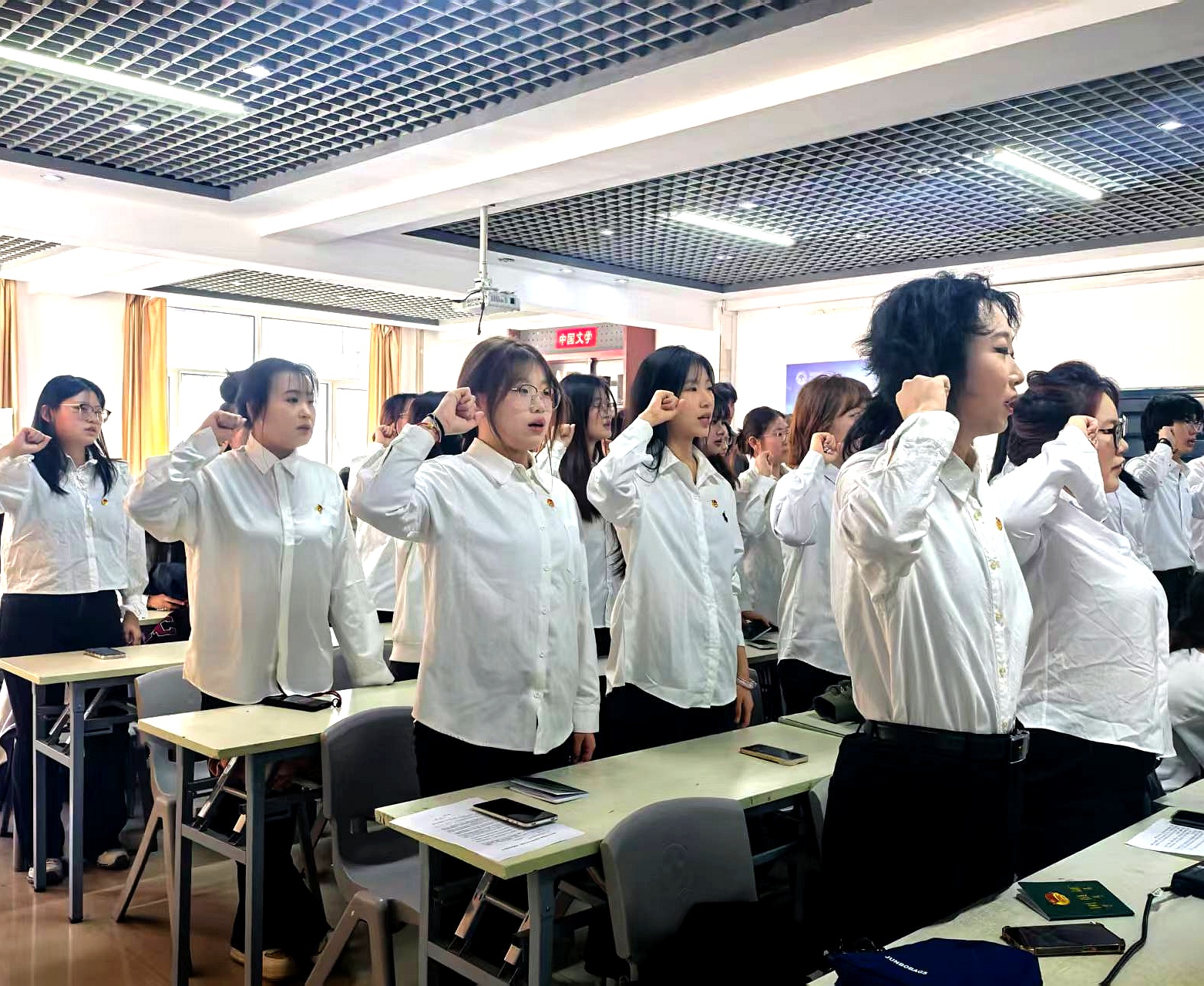 為進一步加強共青團隊伍建設,傳承五四精神,激發團員青年的責任感與使命感,5月22日,美術學院團總支在尚行樓222教室舉行“青春立志擔使命 砥礪前行鑄榮光”新團員入團儀式。 學院黨總支副書記張巍巍、學生黨支部書記王雪菊、團總支負責人王帥及各團支部委員參加了活動。