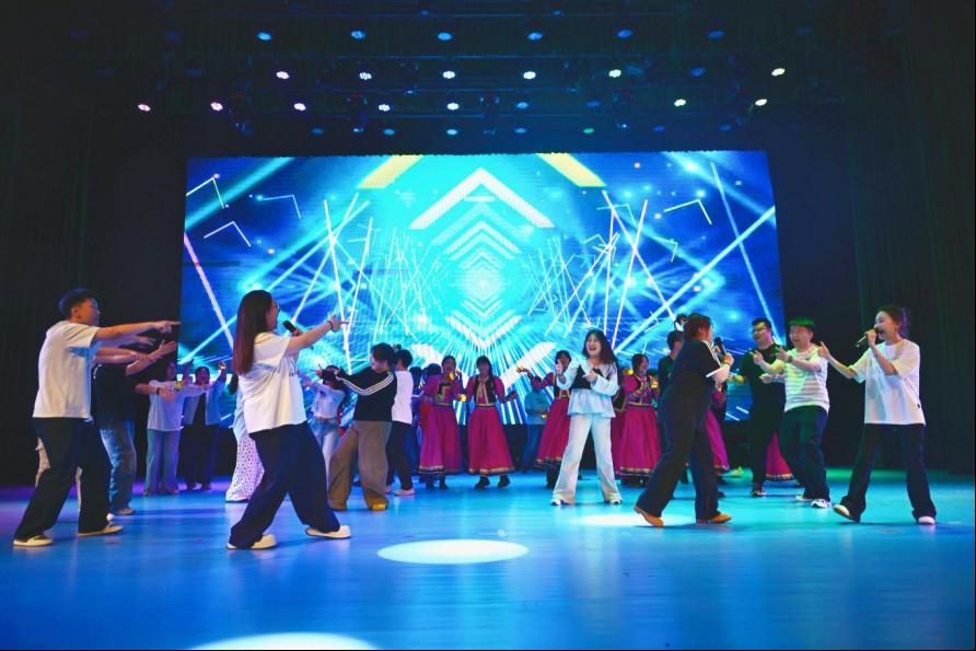 進入第二篇章,張金鳳、安果果等同學帶來熱情奔放的舞蹈《扇子爵士舞》,瞬間點燃現場氣氛,將晚會推向高潮。姜宇航、馬瑛晗等同學帶來的小合唱《路過人間》,用溫柔的歌聲傳遞出對青春的珍惜與對未來的期許。易鑫帶來的舞蹈《電子脈搏》,則用充滿科技感的舞姿,詮釋了當代青年對未來的探索與追求。
