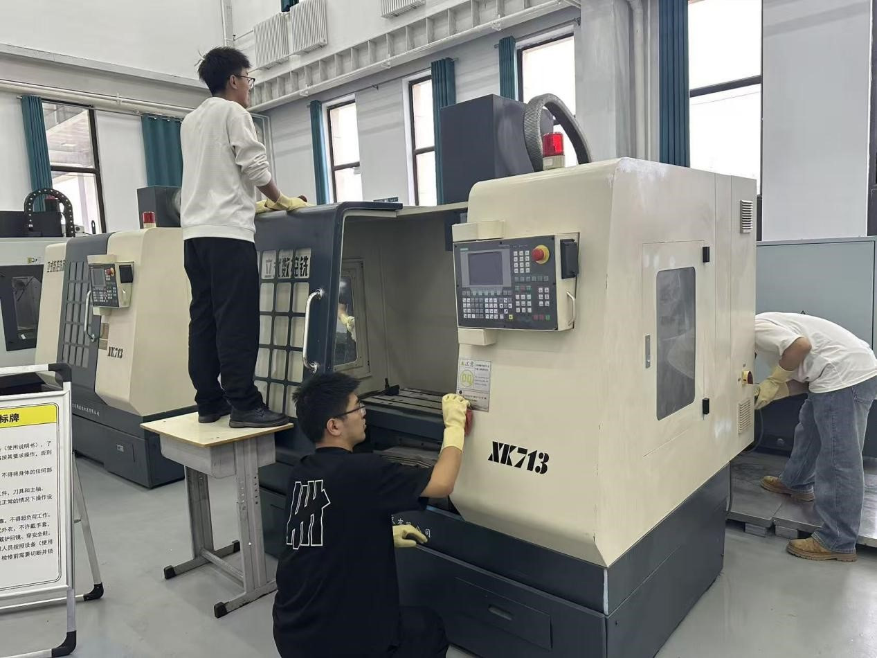 為精準對接評估對實驗教學環境的規范標準,活動籌備階段,學院黨委率先帶隊摸排,聯合實驗室管理中心逐一走訪專業實驗室。各學生黨員手持記錄冊,針對夾具油污堆積、數控機床蒙塵等12項影響實驗教學的清潔難點詳細標注,確保清潔工作靶向發力;高年級學生黨員結合所學專業知識,提出養護清潔標準,協調其他同學使用專用金屬清潔劑、防靜電抹布等工具,清理設備儀器。活動中,學生黨員分工明確、協作高效以嚴謹細致的態度投入勞動,彰顯出學生黨員的責任與擔當。
