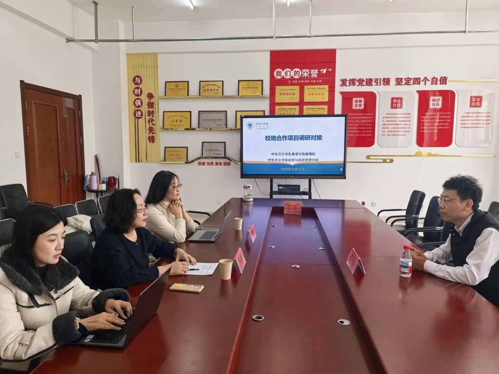 10月31日上午,呼倫貝爾扎賚諾爾陸港國際董事長張昆來法學與經濟管理學院進行合作洽談。學院黨委書記李靜、豐華教授參加洽談會,雙方就深化校企合作進行了深入交流。