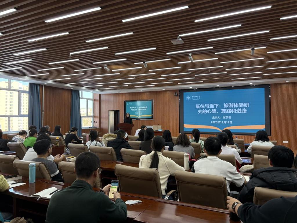 為進一步推動旅游管理專業(yè)碩士點的建設(shè),夯實學(xué)科基礎(chǔ),11月12日下午,旅游地理與歷史文化學(xué)院邀請海南大學(xué)二級教授、博士生導(dǎo)師、《旅游學(xué)刊》副主編謝彥君,在崇文樓A501會議室開展題為“既往與當下:旅游體驗研究的心路、理路和進路”專題講座。本次講座由旅游管理專業(yè)碩士點負責(zé)人亞吉教授主持,旅游管理專業(yè)多位專任教師及2024級、2025級旅游管理碩士研究生參加了講座。