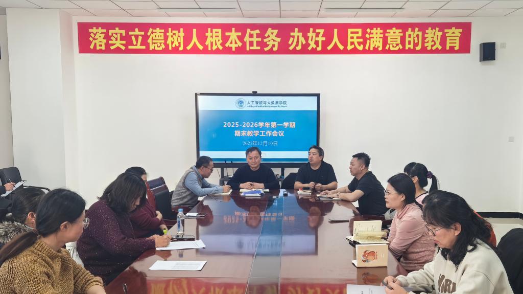 12月10日,人工智能與大數據學院在產教融合北樓510會議室召開了2025-2026學年第一學期期末教學工作會議。會議由學院院長劉仁山主持,全體教職工參會。
