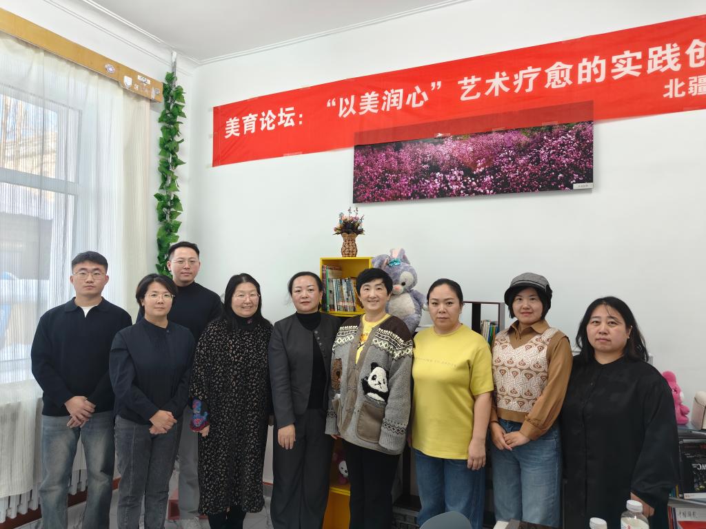 論壇現場,與會人員圍繞探索美育與心理療愈的深度融合路徑,推動美育與心理健康教育的創造性發展為核心主題展開深入研討。討論藝術療愈在心理健康教育中的創新應用。桂麗從美育課程設計角度,分享了將繪畫、音樂等藝術形式融入心理健康教育的實踐經驗;謝春輝結合心理學理論,解析了藝術療愈在情緒調節、自我認知提升中的作用機制;趙雪蓮、王帥等教師結合在工作中視覺藝術與心理學知識分享經驗,引導學生在創作中覺察情緒、重構認知。與會教師一致認為,美育與心理療愈的結合,不僅能豐富心理健康教育的形式,更能通過藝術的感染力幫助學生釋放壓力、建立積極心理品質。